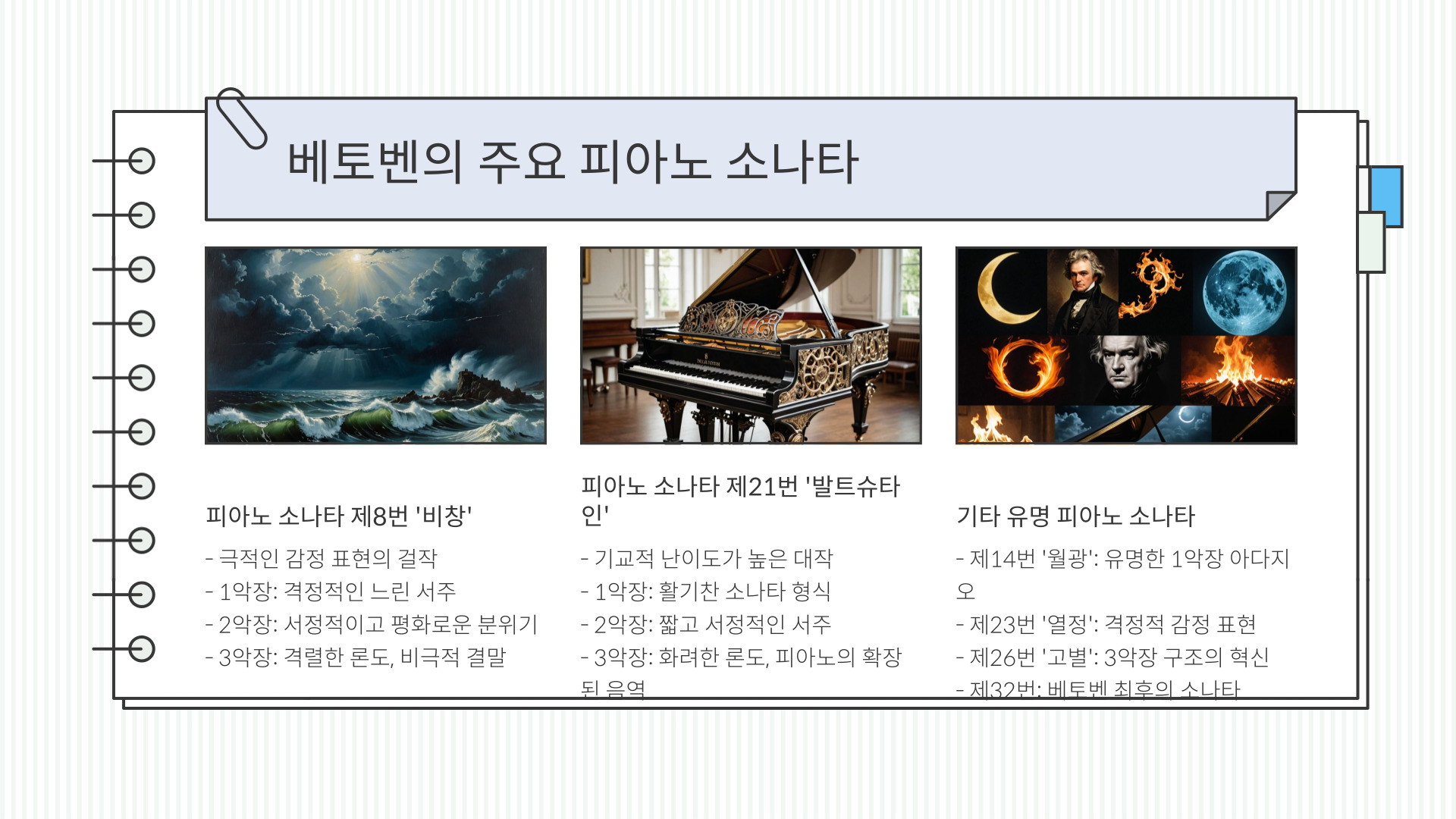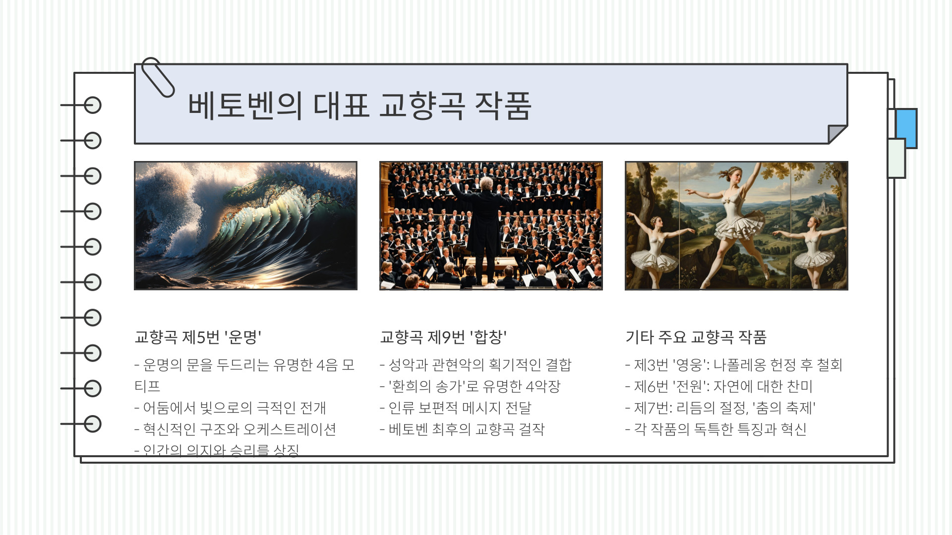 그는 음악을 ‘귀’로 듣지 않고, ‘머릿속’에서 상상해 작곡했다고 전해집니다.3. 베토벤의 대표곡과 특징